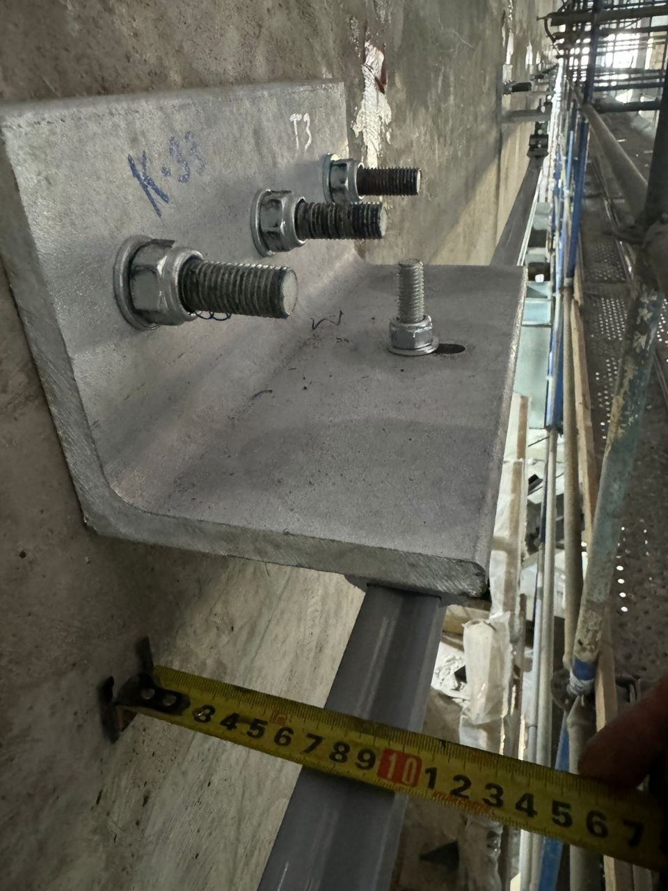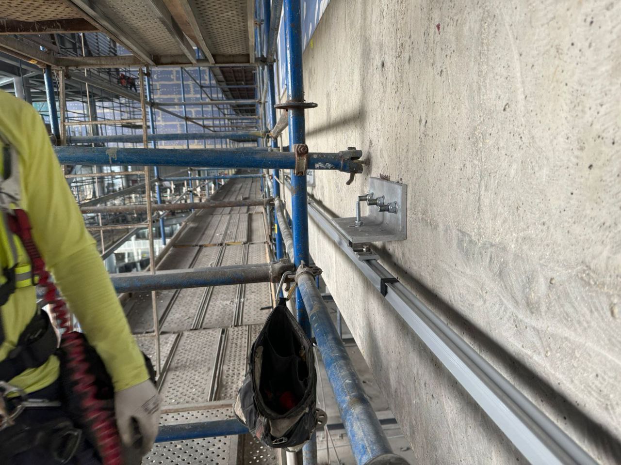 Для гарантии безупречного соответствия проектной документации разметка под анкерные крепления на объекте выполнялась с применением геодезического оборудования. Это позволило обеспечить максимальную точность и надежность будущей системы, что критически важно для безопасности высотных работ.